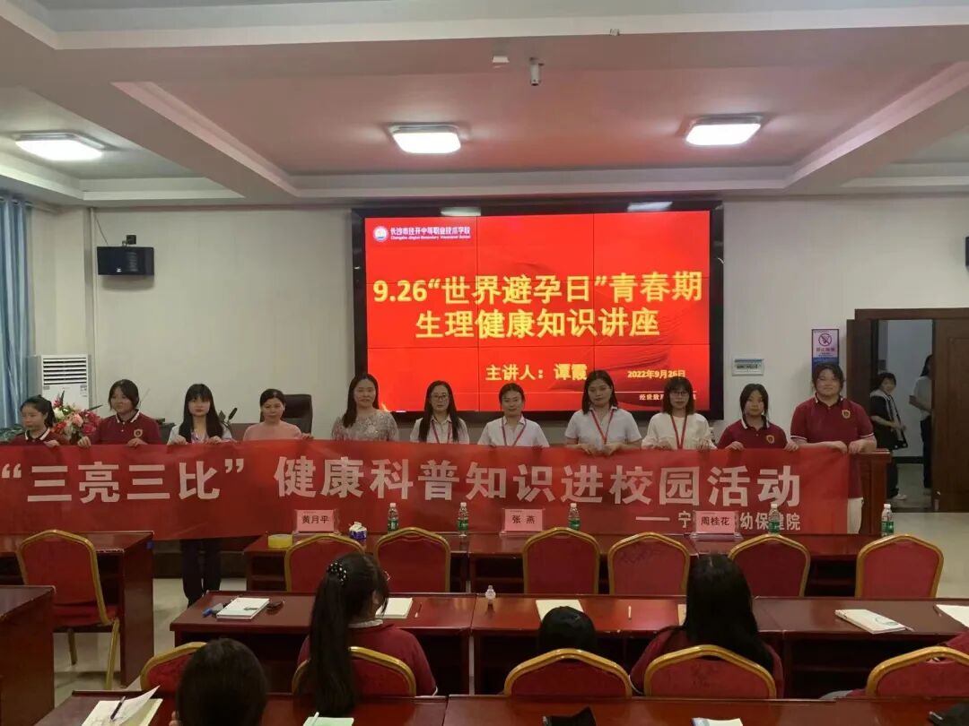 为帮助学生如何辨别青春期生理健康知识,防范校园欺凌和性侵害,我校还邀请到了宁乡市妇幼保健院专家开展了线下的讲座。出席本次活动的有宁乡市妇幼保健院健康教育科主任谭霞,计划生育基层指导科主任黄月平,长沙市经开中等职业技术学校副校长张燕,德育处副处长周桂花,各班班主任,医卫类教研组陈思源、吴欢、邵郁婷、刘娟等老师。
