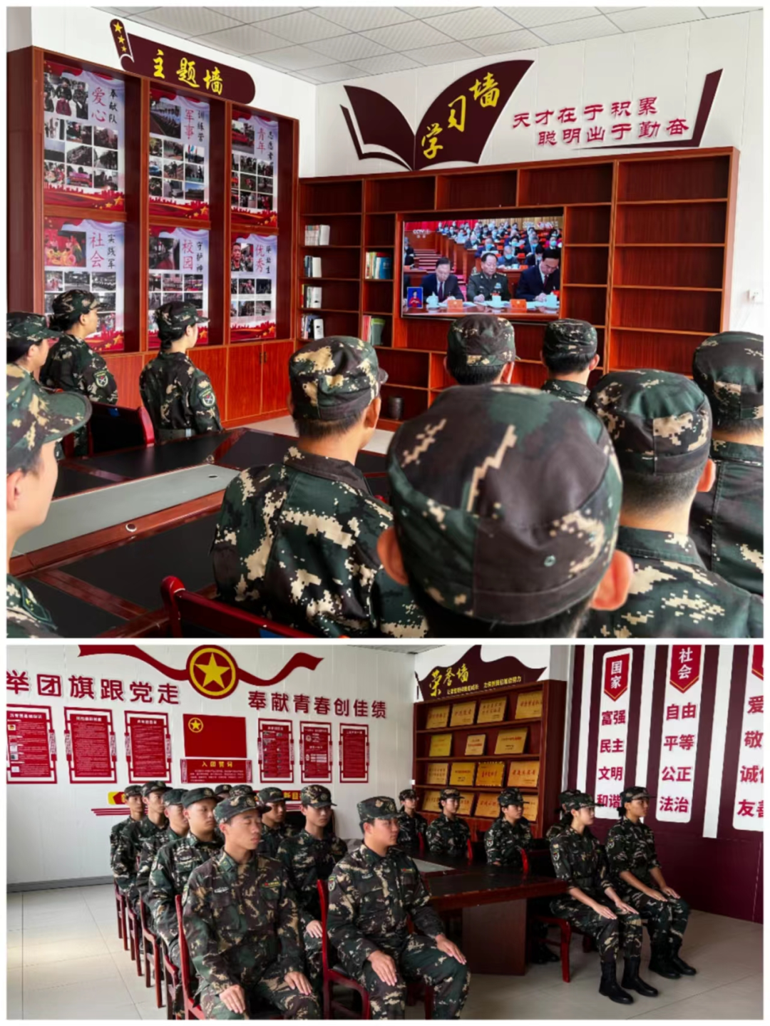 我校先锋连干部在青年之家会议室集中收看