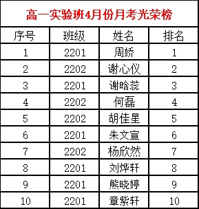 芳菲四月,为检验并了解本月学生的学习情况,帮助教师了解一个月来学生的学习成果,为以后的教学进行有效指导,我校于4月19日组织了本学期第二次实验班月考。为了总结经验、表彰优秀,进一步激发学生的积极性,我校对本次月考年级前十名的同学进行了表彰。